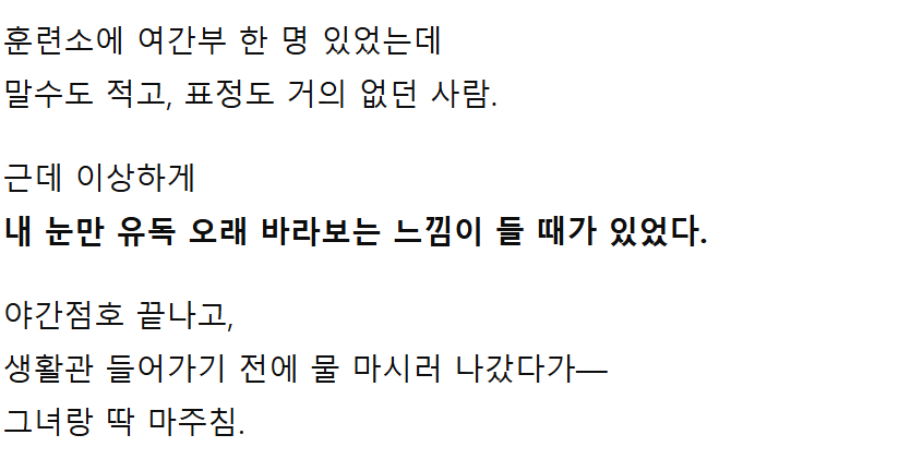 훈련소 여간부랑이… 야간에 단둘이